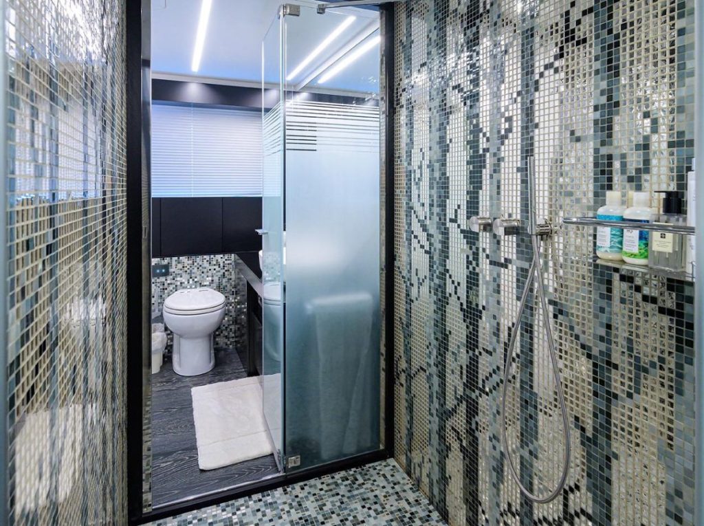 On deck, SHINE blends performance styling with purposeful comfort. Metallic silver finishes and sculpted exterior lines give the 9X a commanding presence, while upgraded teak, new exterior cushions, and refined lounge zones create a relaxed atmosphere for guests. The hydraulic swim platform and passerelle simplify water access and tender launch, supported by a fully equipped wet bar with refrigeration, wine storage, and bar seating for effortless entertaining. Stability and convenience are enhanced through dual Seakeeper units, Starlink connectivity, underwater lighting, and hydraulic bow and stern thrusters, ensuring smooth handling and comfort in any conditions.